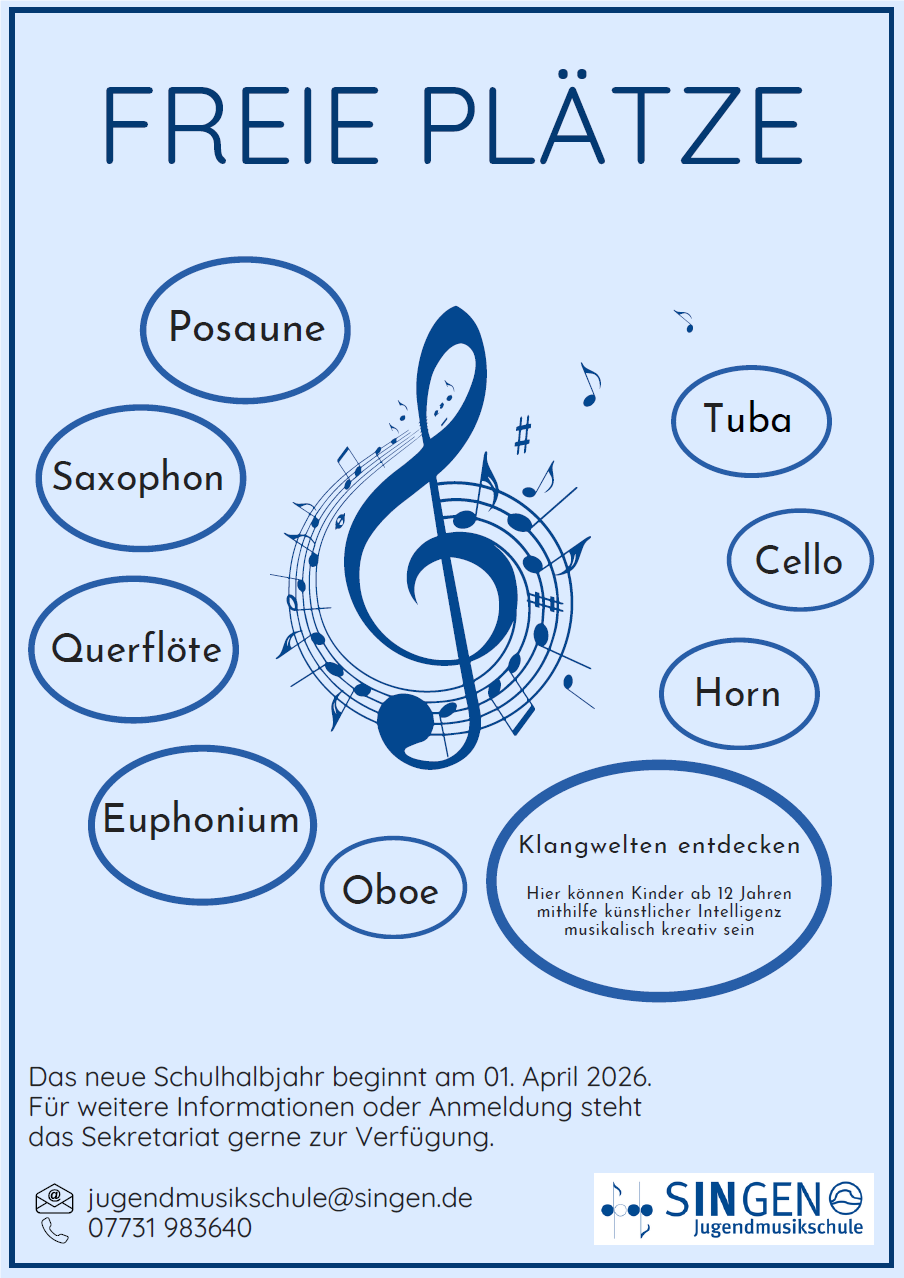 Kontakt: Telefonisch unter 07731 983640 oder per E-Mail an: jugendmusikschule@singen.de